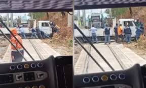 Una camioneta se quedó atascada en las vías del Tren Metropolitano de Cochabamba